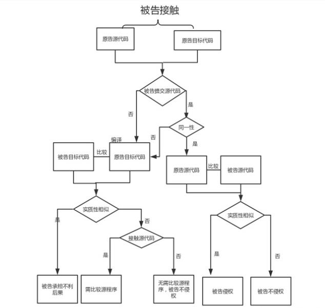 3、被控侵权软件与著作权人软件相同或实质性相似;在软件的相似性比对上,司法实践中,原告往往很难提供被告涉嫌侵权软件的源程序中的后端代码部分,因此,法院会根据具体情况要求被告承担一定的举证责任,并由被告承担举证不能的不利后果。在实质性相似的鉴定对象选择上,根据侵权方接触的对象(源程序 目标程序)不同而有所不同,具体鉴定对象选择请见本文件附图。在判定是否构成实质性相似时,会考虑代码在程序逻辑和结构方面、函数变量命名特点、相同的注释(文字)错误出现的次数、全局变量、字符串资源、同名的类(函数+变量)数量、开发者及开发时间、注释内容、文件命名、目录结构等个性化信息方面的相似程度。